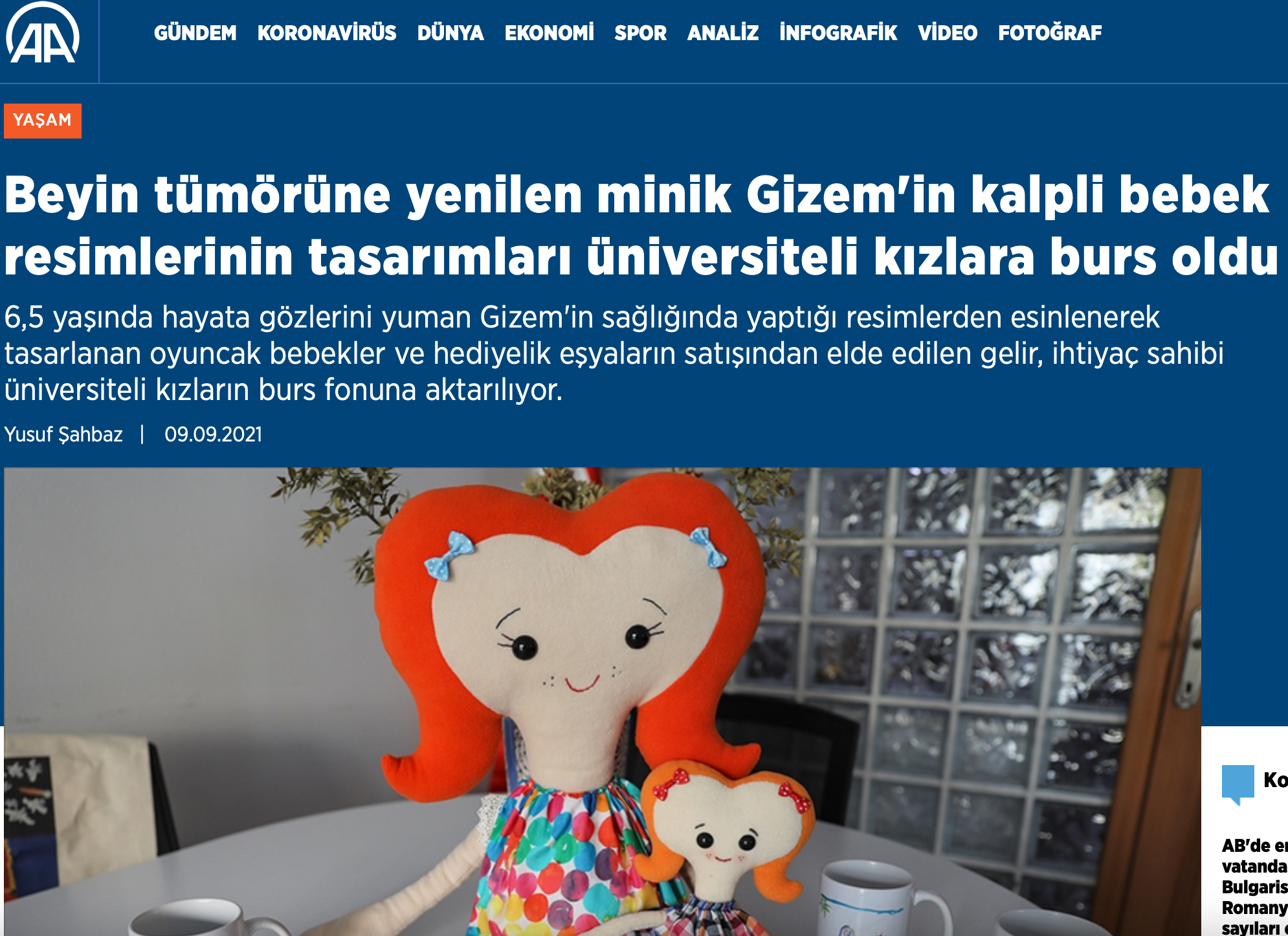 27 Ekim 2014 tarihinde güleç gözlerimle dünyaya geldim. Çok sevdim, çok sevildim. Karşılaştığım zorluklara rağmen, içinde şen kahkahalar, neşeli şarkılar, rengarenk resimler ve sonsuz sevgi olan çok güzel bir hikaye yazdım. Kalp bebeklerimle dünyaya iz bıraktım. Şimdi sizden kalp bebeklerim GİZOŞ ile beraber iyilikleri büyütmenizi istiyorum.